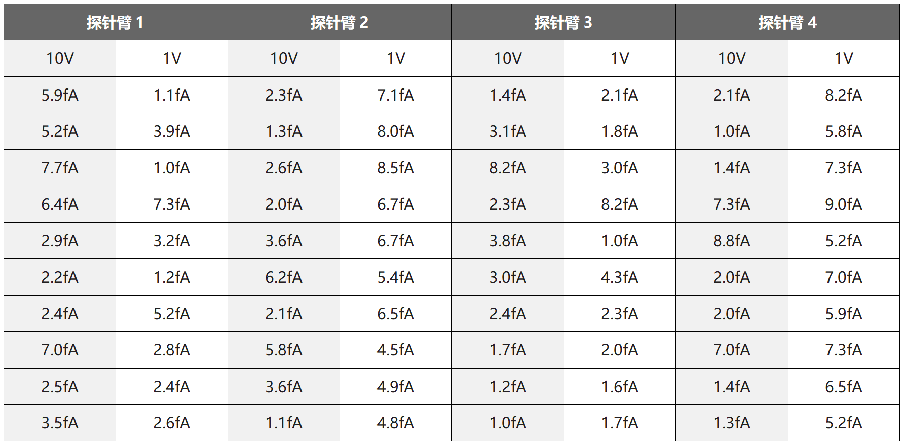 | 类型 | 直流探针臂 | |||