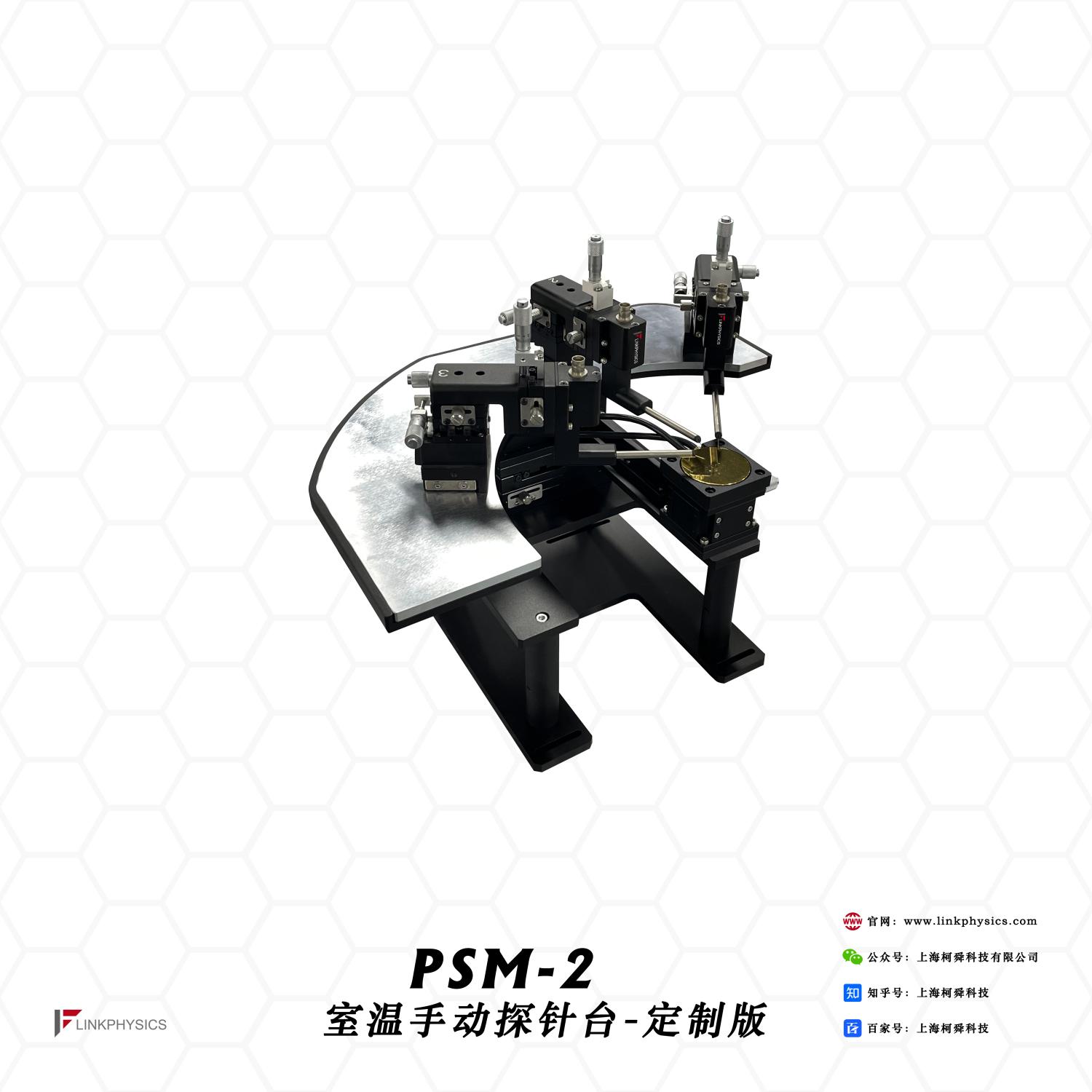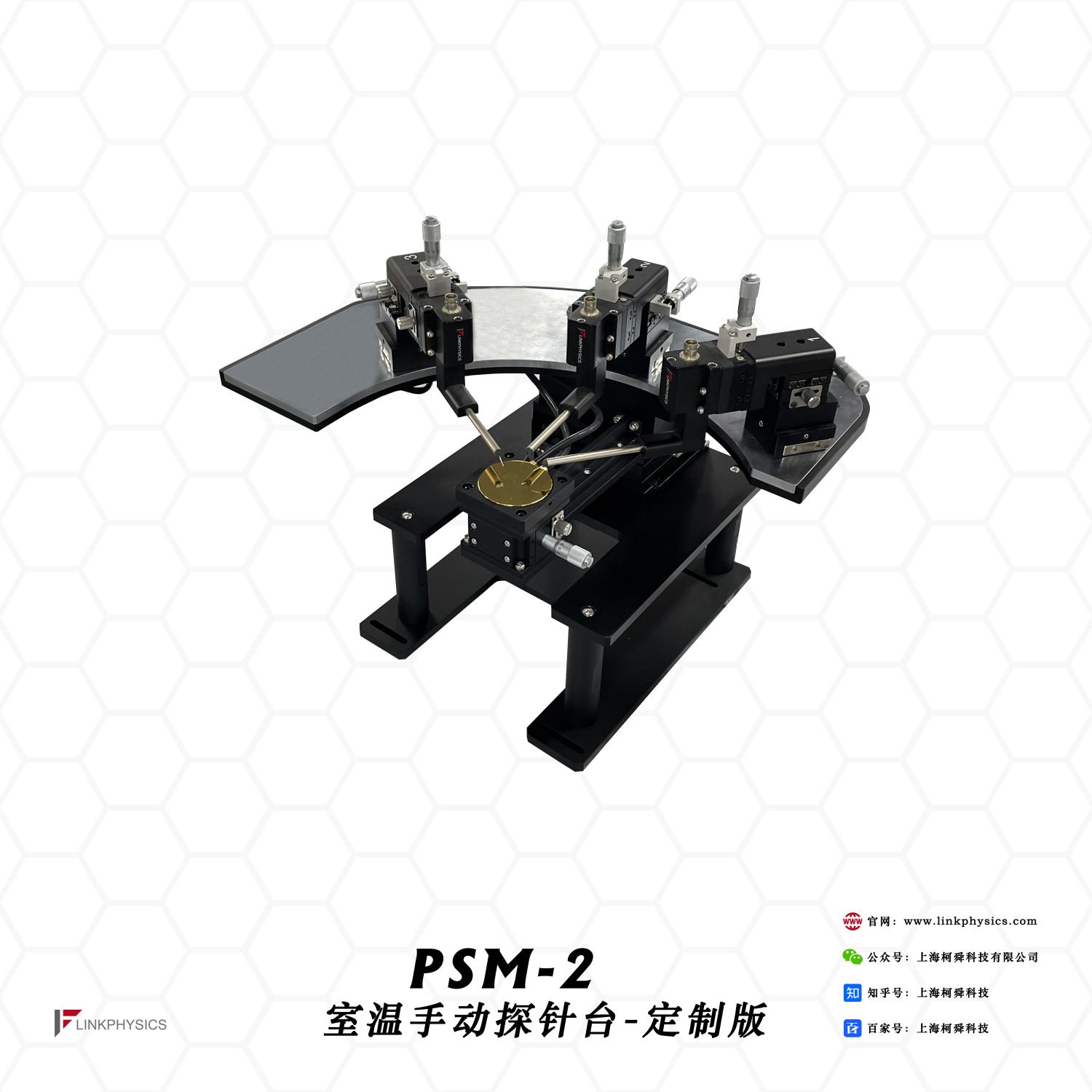 PSM-2室温手动探针台-定制版是一款高品质的定制探针台,能够对2寸晶圆片进行大量非破坏性的、标准的电学实验,外接不同的测试设备,可以完成对器件的电学特性测量、参数测量、DC测量。科学的桌面设计是学术和实验研究的选择。