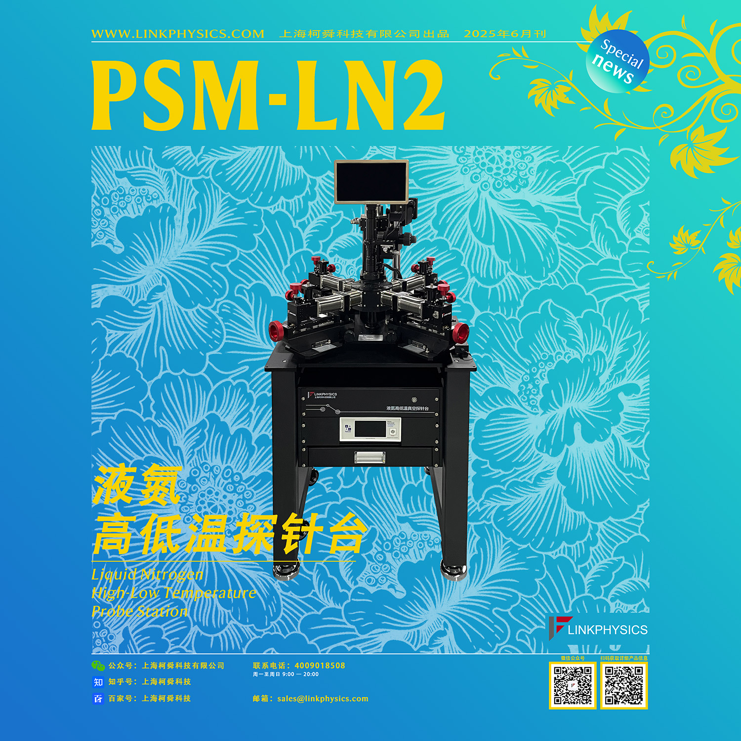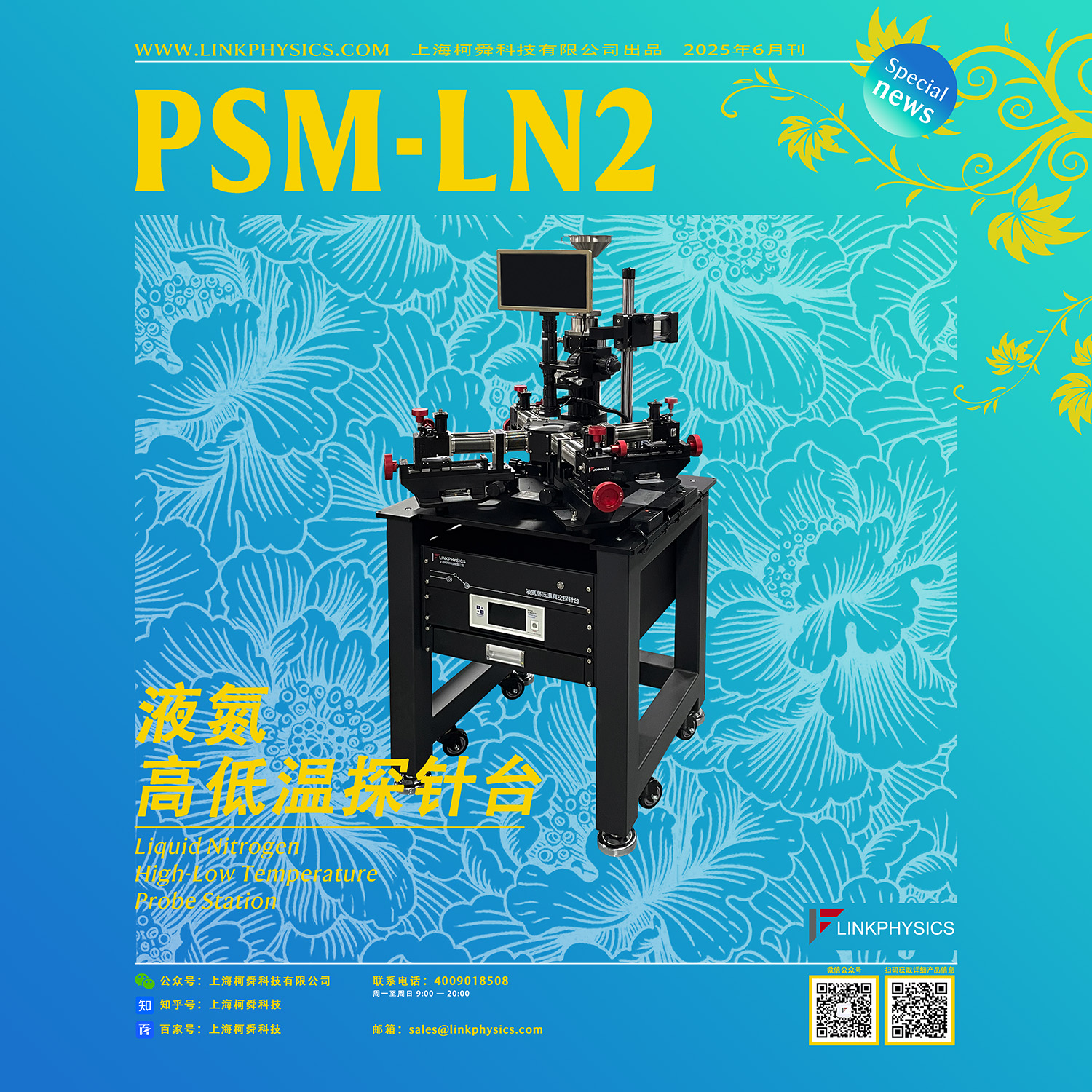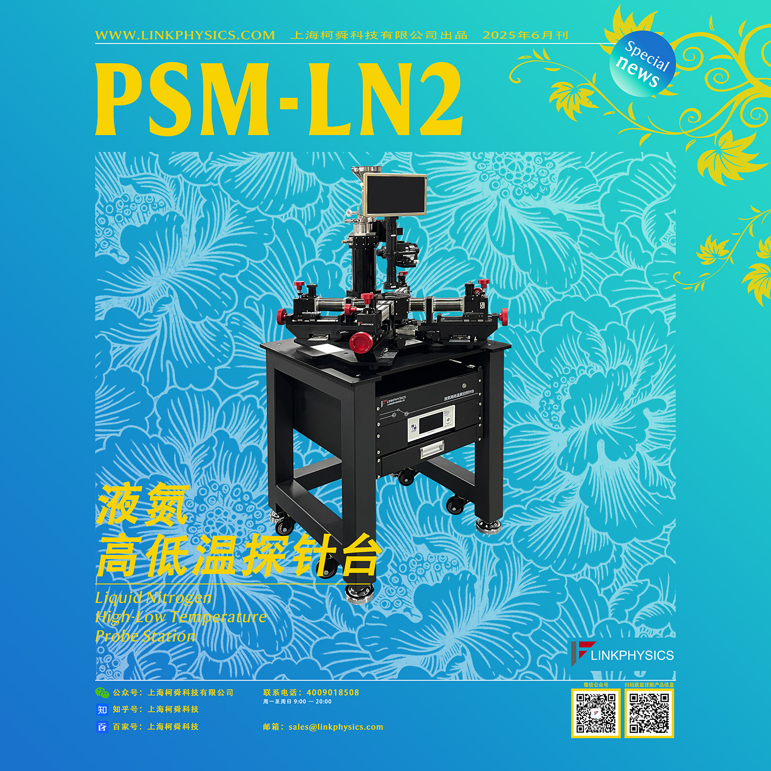 这台高精度探针台全称为PSM-LN2系列液氮高低温探针台,它可以通过显微镜和CCD将待测器件放大,用高精度微探针对待测器件进行扎针,再外接电学测试仪表进行测试和分析。它还能够为半导体芯片的电学参数测试提供一个80K-800K高低温真空测试环境,通过外接不同的电学测量仪器,可完成集成电路的电压、电流、电阻以及IV曲线等参数检测,用于低温真空环境下的芯片、晶圆和器件的非破坏性电学测试。同时它还能够在低温环境下对样品进行各种非破坏性的物理性能和电学性能测试,帮助研究人员深入了解材料或者器件的各种物理性能和电学性能,从而为新材料的研发和应用提供重要的数据支持,在科学研究和技术开发中发挥着至关重要的作用。